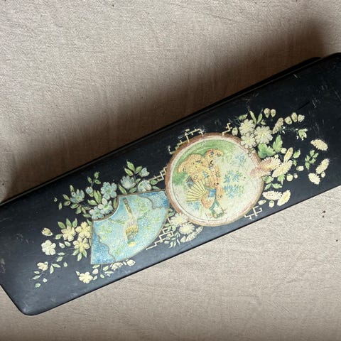 Vanha käsin kaiverrettu sinoopperi rasia 1800/1900 vaihde