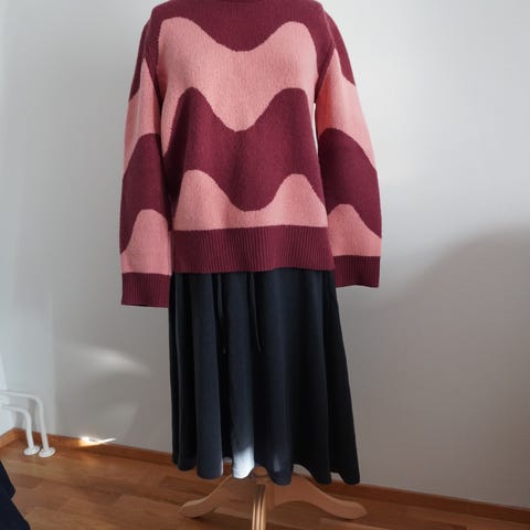 Marimekko Lohdukas Unikko neulepaita. Koko XS, mutta sanoisin että menee hyvin jopa M-kokoiselle. Materiaali 55% puuvillaa, 35% polyamidia ja 10% alpakkaa. Erittäin siisti käytetty kunto.