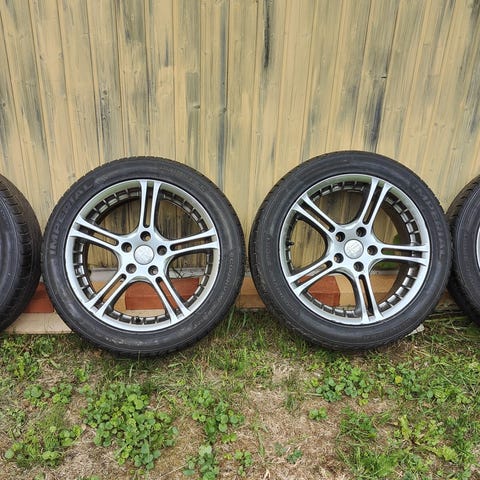 215/55ZR17 kesärenkaat Sailun Atrezzo Ecopoint alumiinivanteilla 5x114.3. Renkaissa paistoleima 4423 hyvä kuntoiset ja pintaa jäljellä hyvin. Alumiinivanteet Mitsubishin omat 7x17 ET 46 ja pulttijako 5x114.3. Vanteet suorat mutta likaiset. Pesu ja vahaus niin saa siistit.