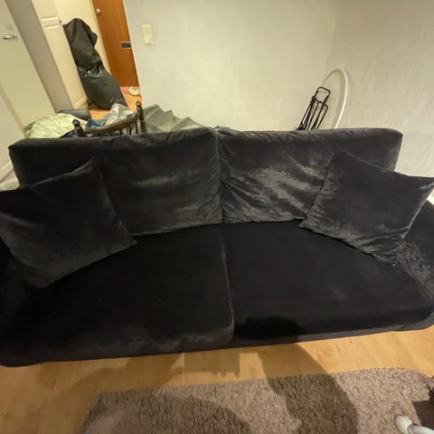 Kohtalaisessa kunnossa oleva sohva. Tahra selkänojassa, yst. kts. kuva 2. Varmaan lähtisi tekstiilipesurilla. Haku Tahmela, omat kantajat, ei portaita. Leveys 140cm, istuinkorkeus 40cm