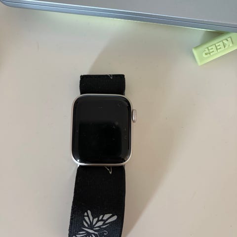 Erikseen myynnissä myös kuvassa näkyvä Apple Watch, joka pelaa kuulokkeiden kanssa yhteen. Kyseessä Series 6 ja 44mm malli. Pientä käytön jälkeä löytyy, mutta kaikki on ehjää ja pelaa kuten kuuluu. Kellosta ei kuittia. Tämän saa halutessaan mukaan 75 euron lisähintaan.