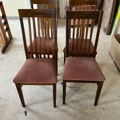 Annetaan 3 tuolia. Olleet ulkona hetken aikaa ja yhden selkänoja hieman löystynyt. Nouto Joupista.