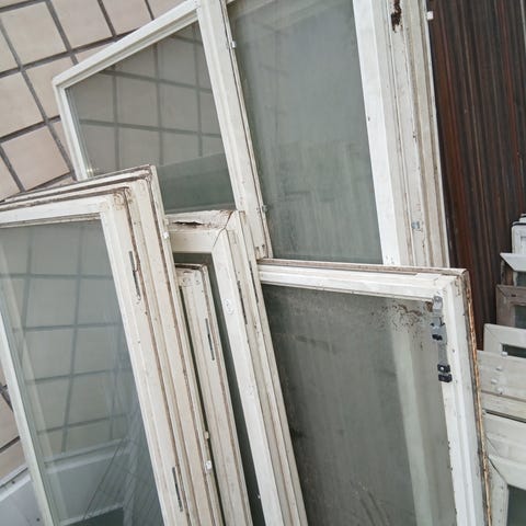 Puuovi, jossa suuri lasiaukko. Oven koko 90*210cm. 2kpl karmeja, eli tupla ovet kumpaankin karmiin. Toisissa tupla lasit. Nouto Lieto Loukinainen.