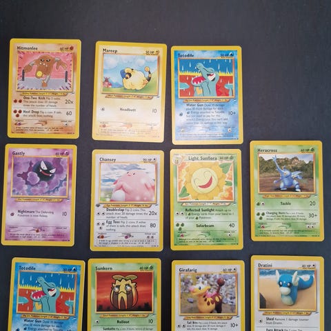 Pokemon Neo Genesis kortteja, kunto vaihtelee