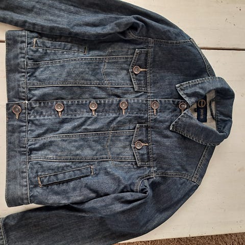 Siistissä, käytetyssä kunnossa oleva vaaleansininen farkkutakki. Normaalisti napitettavat napit. Mitat: leveys kai-kai 42cm, pituus 46cm kauluksen vierestä mitattuna. Hihanpituus 46cm kai-hihansuusta mitattuna. Myynnissä Marjalassa.