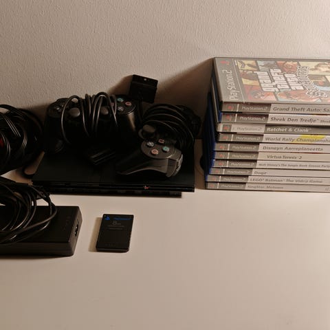 PlayStation 2 pelipaketti, johon kuuluu viisi peliä: The Polar Express, Formula One 04, Burnout Revenge, Transformers The Game ja NHL 2005. Pelit ovat alkuperäisissä PS2-koteloissa. Ikäsuositus peleissä pääosin 3+ tai 12+ kannessa olevan merkinnän mukaan. Sopii PlayStation 2 -konsolille ja yhteensopiville laitteille. Ei isompia naarmuja peleissä. Lisäkuvia saa pyytämällä.