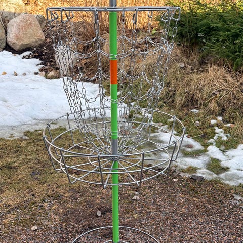 Suhteellisen hyvässä kunnossa oleva frisbeegolf kori (kouluarvosanoin 8 kuntoluokka). Alkuperäinen hinta 160€ uutena ostettuna. Korista pyydän 70€/tarjoa hintaa. Kori on 4 vuotta vanha, mutta ei ole ollut jatkuvassa käytössä.