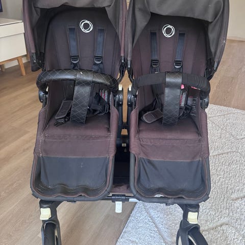 Bugaboon tuplarattaat. Meille käytettynä myös tulleet mutta jäi vähälle käytölle kun isompi ei enää rattaisiin suostunut. Kulumaa paljon siellä ja täällä.