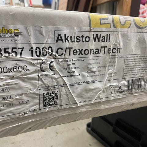 Ecophon Akusto Wall C/Super G akustiikkalevy. Levyn koko on 2700 x 600 x 40 mm. Paketissa 4 levyä. Tarkoitettu seinäasennuksiin tilojen akustoinnin parantamiseen esimerkiksi toimistoissa, julkisissa tiloissa tai kotikäytössä. Nouto Kumpulasta.