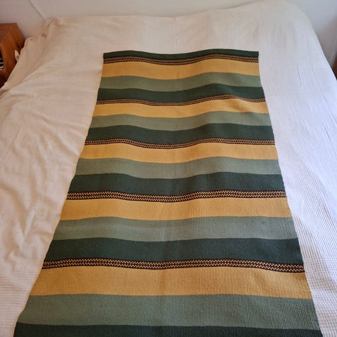 Kangaspuissa kudottu käyttämätön villalagasta, käyttämätön raanu / seinävaate 101 x 153 + hapsut.