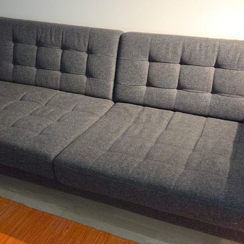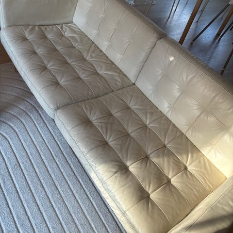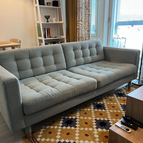 Sohva on useamman vuoden vanha, joten ihan uutta se ei vastaa, mutta on edelleen hyvin siisti, eikä ole kulumaa.