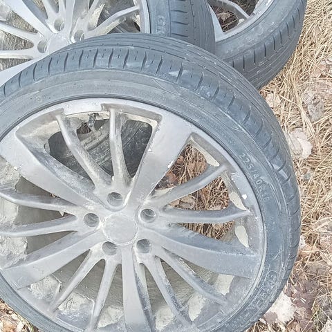 Siitäpä hyvät kesäset mersun 17 tuuman aluvanteilla. Renkaissa pintaa vielä 5-6mm. yhdessä kuvassa ympyröitynä näkyy pieni painauma vanteessa mutta ei ole kuin kosmeettinen eli ei täristä eikä vaikuta ajoon.