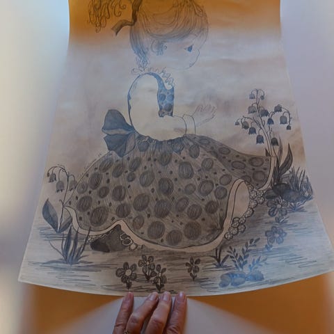 Poika ja koira, lyijykynäpiirustus