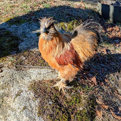 Silkkikana kukko. Väritys musta-ruskea, höyhenpeite runsas ja pörröinen, myös jaloissa höyheniä. Sopii esimerkiksi harrastekanalaan tai koristekanaksi pihapiiriin. Kuvista näkyy yksilön ulkonäkö ja höyhenten väritys.