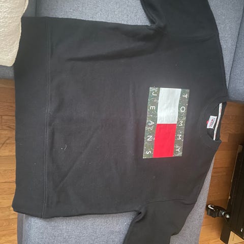 Tyylikäs Hilfigerin miesten musta collegepaita, logo on ommeltu rintaan, myydään laatupaita nyt tarpeettomana edullisesti pois, paita on uusi ja käyttämätön, laput ja kaikki ovat edelleen paikoillaan, kuten kuvistakin näkyy