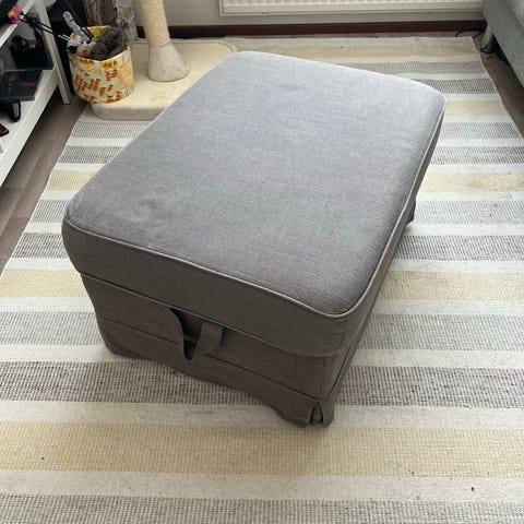 Hyvin satunnaisella käytöllä ollut Vekeltä ostettu rahi/jakkara. Mustaa samettia kultaisella yksityiskohdalla. Käytännössä uudenveroinen. Kultaisessa osassa pieni naarmu, joka saattoi olla jo ostaessa.