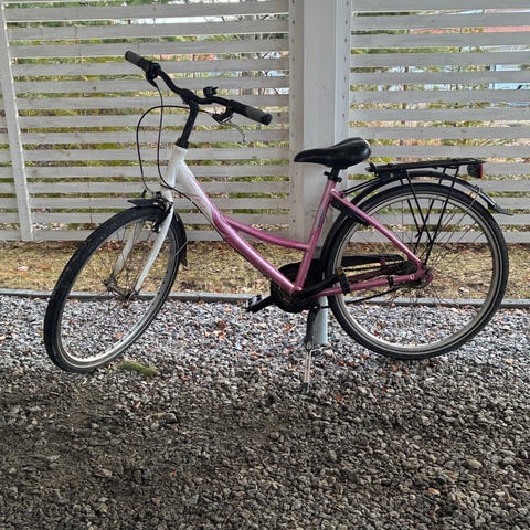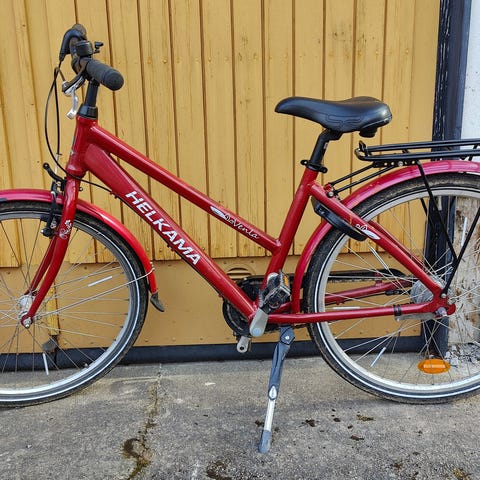 Hyväkuntoinen Helkama Venla 26" sinisellä rungolla. Pyörässä on 26 tuuman renkaat, etu- ja takalokasuojat sekä takatavarateline.