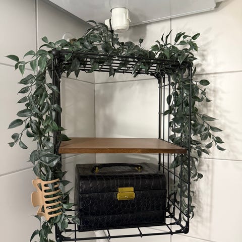 Kultainen Ikean seinäteline esim. Valkokuvia varten. Alaosassa on neljä koukkua.