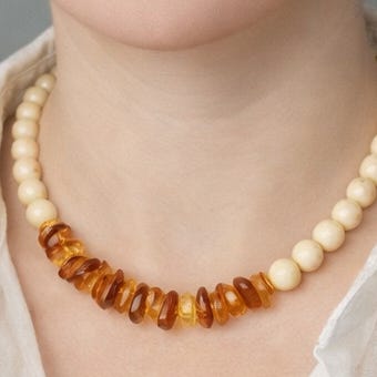 Kaunis meripihkakaulakoru lämpimissä hunajan ja konjakin sävyissä. Klassinen ja ajaton malli, joka sopii sekä arkeen että juhlaan.