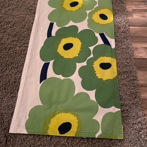 Marimekko Unikko kappa sinisellä kukkakuosilla. Koko 268x45cm. Siisti.