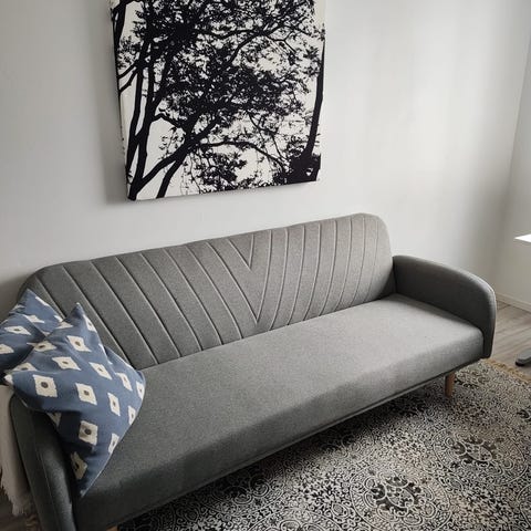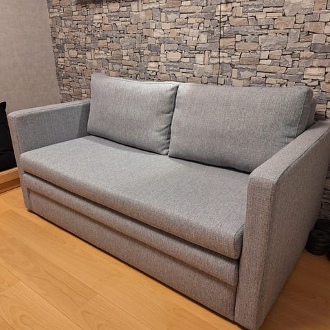todella hyvässä kunnossa oleva tumman harmaa vuodesohva