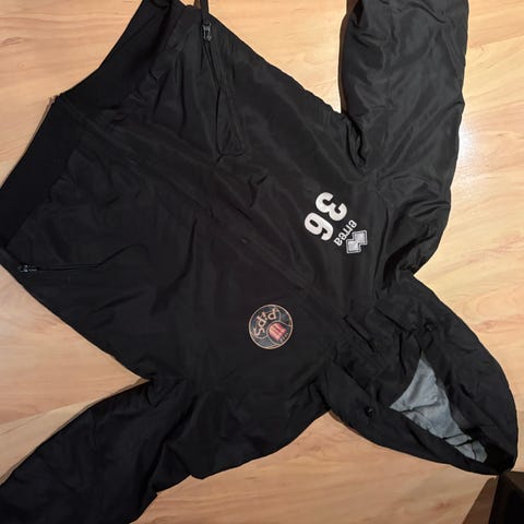 Adidas jalkapallotakki miehille koossa S. Musta takki, jossa valkoiset raidat olkapäillä ja hihoissa sekä vetoketjullinen etuosa. Korkea kaulus ja vetoketjulliset sivutaskut. Materiaali on sileää urheilukangasta (todennäköisesti polyesteriä). Sopii jalkapalloon ja muuhun urheiluun tai vapaa-aikaan. Toisen taskun vieressä jonkin verran nukkaantumista kankaan pinnassa.
