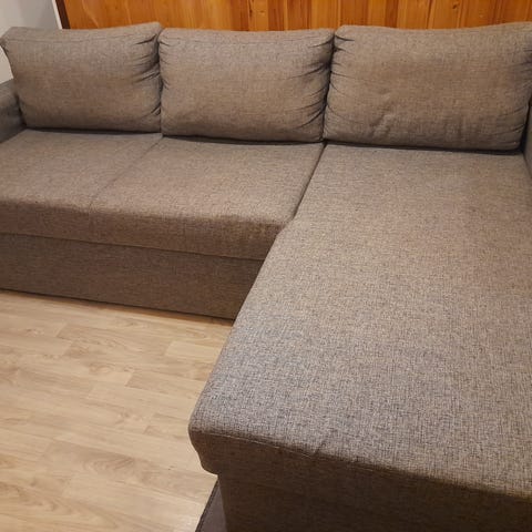 Ihan ok kuntoinen sohva pois uuden tieltä. Ei repeämiä mutta vuode osa nukkaantunut tms. Näkyy kuvissa. Leveys 250cm, divaanin syvyys 160cm, istuinkorkeus 43cm. Ei eläimiä taloudessa 5 vuoteen. Kannattaa kuitenkin pestä vaikka tekstiilipesurilla kun joku tahra saattaa olla. Jeesaan kantamisessa. Vain nouto.