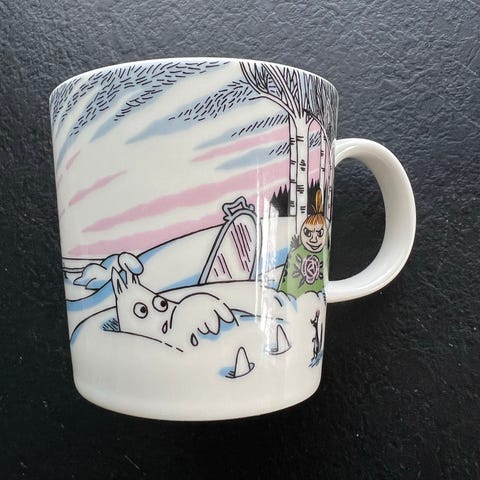 Käyttämätön, tarrallinen. 2017 Muumi muki. Pidetty vitriinissä. Ei käytetty. Kausimuki eli tuotannosta poistunut. 0,3 L, korkeus n 8cm, keraaminen.
