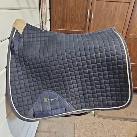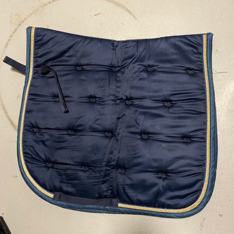 Koulumallinen musta huopa, ostettu aikanaan Saksasta isosta hevostarvikeliikkeestä. Käytetty mutta edelleen hyvässä käyttökunnossa. Päällyspuoli samettimaista sileää kangasta, sisäpuoli puuvillaa. Tukeva vähän paksumpi huopa, pysyy paikallaan satulan alla. Sisäpuolella jonkin verran karvoja jotka ei ole lähteneet pesussa.