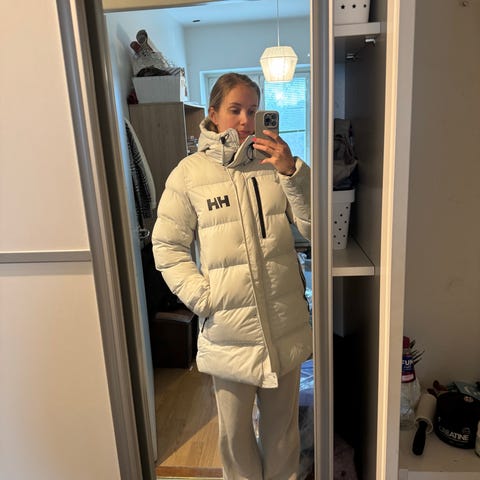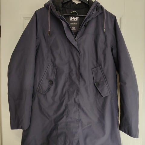 Helly Hansen naisten talvitakki, koko M. Vihreä polyesteristä valmistettu takki, jossa on kiinteä huppu ja edessä vetoketju sekä painonappikiinnitys. Useita etutaskuja ja pidempi malli.