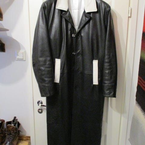 Takki, nahkaa, musta, 52, karvakaulus, vuori teddykarvaa, 1/2 pitkä