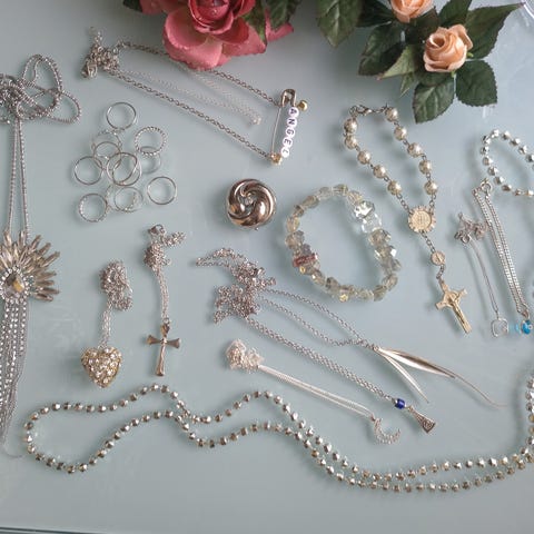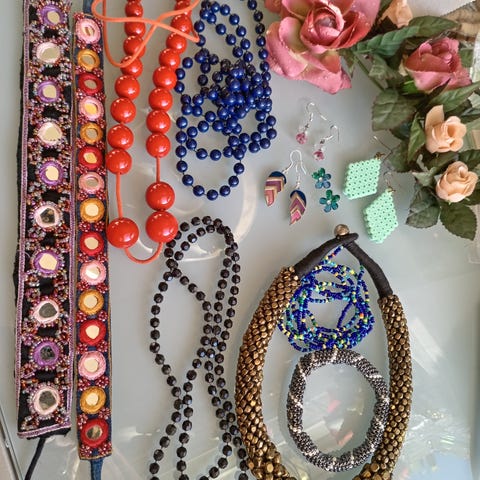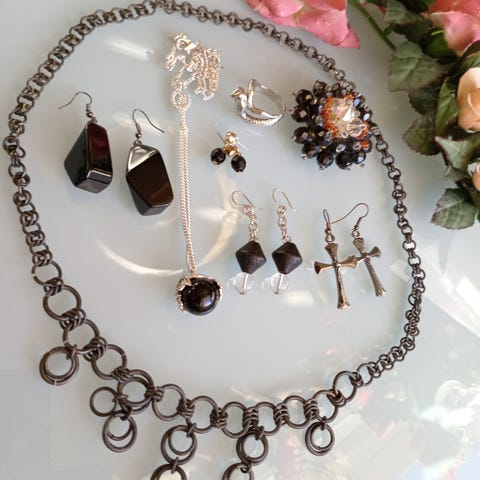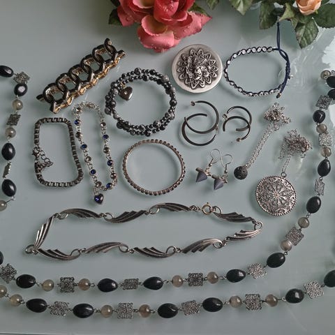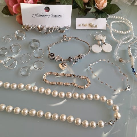 naisten korusetti. Useita erilaisia koruja, kuten kaulakoruja, rannekoruja, sormuksia ja korvakoruja. Materiaalina on muu kuin jalometalli, koruissa on erilaisia koristeita ja riipuksia. Sopii käytettäväksi arki- ja juhla-asujen kanssa monipuolisena korukokoelmana.osa uusia