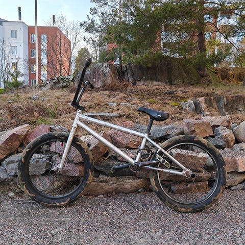 Osiris BMX-pyörä unisex-käyttöön. Rungon koko on L ja renkaiden koko 20". Väriltään pyörä on sininen. Pyörässä on yksi eturatas ja takaratas ketjuvedolla. Satula on perusmallinen ja kuvissa näkyy kulumaa. Pyörä soveltuu BMX-tyyppiseen ajoon ja temppuiluun sekä lyhyisiin matkoihin tasaisilla alustoilla. Kaikki tarkemmat tekniset tiedot ja varusteet kannattaa tarkistaa paikan päällä jarruja ri ole kiinni mutta jarru satulat sekä muut kahvat saa mukaan on otettu irti sen takia että vaijerit kaktkesi ja en ole kerennyt ostaa uusia onneksi ei maksa paljoa...