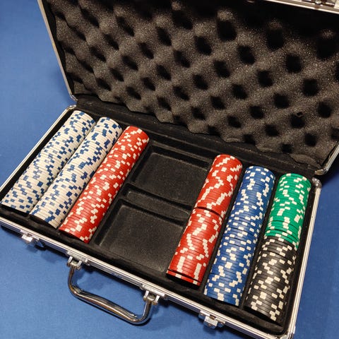 Pokerisalkku pelimerkeillä ja korteilla