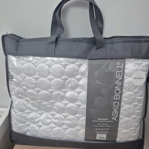 Uusi, käyttämätön. Asko Bollell Lauha päiväpeite 260x260 cm. Ihana pehmeä samettimainen pinta ja klassisen tyylikäs tikattu ruutukuvio. Päiväpeiton toinen puoli on kevyempää materiaalia, mikä tekee päiväpeitteestä helposti käsiteltävän, pedattavan.