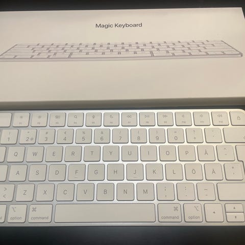 Ohut malli, jossa matalaprofiiliset näppäimet. Väri musta/harmaa. Macin alkuperäinen näppäimistö, joka on ollut vähäisellä käytöllä. Langaton, ja yhdistyy Bluetoothilla.
