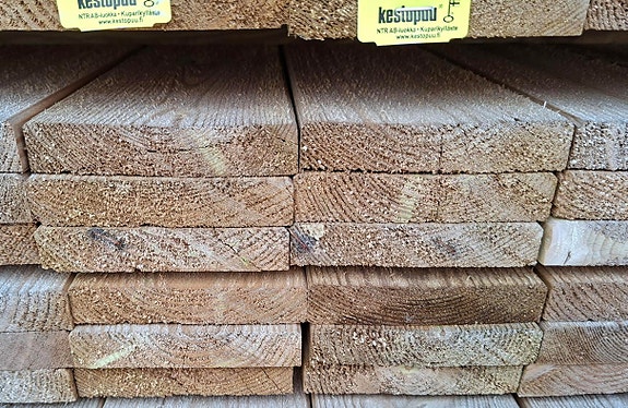 Erä halpaa n. ”kakkosnelosta”. Ensimmäinen kuva pienellä kulmapyöristyksellä olevaa ympärihöylättyä mäntyä, mitat 45 x 95 mm. Pituus 4500 mm. Toinen kuva teräväkulmahöyläyksellä olevaa kuusta, mitat 45 x 105 mm, pituus 2980 mm. Hinta molemmilla 2 €/m. Kannattaa katsoa muutkin ilmoituksemme!