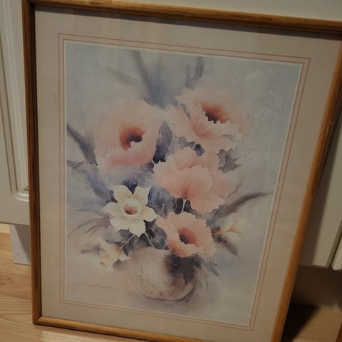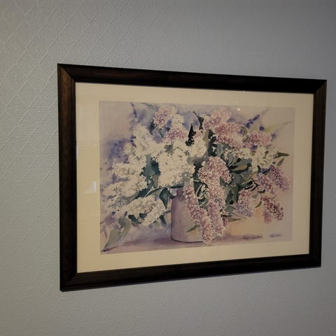Koko kehyksineen korkeus 76,5, leveys 56 cm. Nouto.