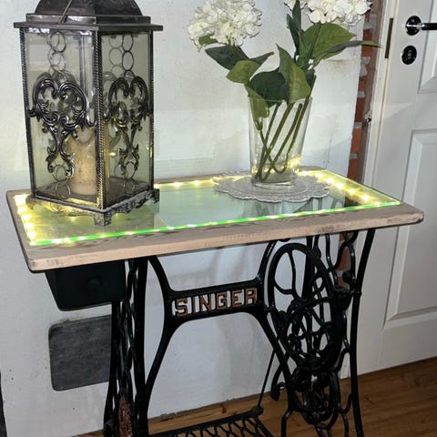 Tarjoilupöytä koivunpahkaa, kansi n. 75x55cm, kork, 75cm, ylhäällä vetolatikko, jossa Luminarcin eril. laseja ja pikareita, pyörät alla, hienoa kotimaista käsityötä, h. 280€