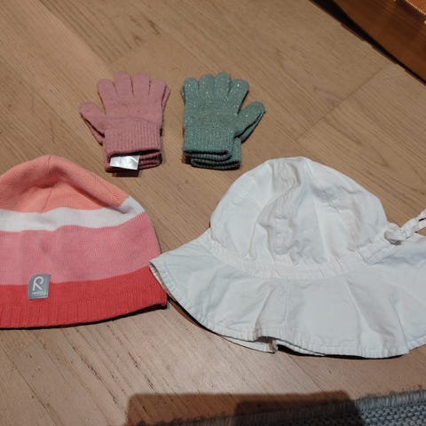 Kolme pipoa toiselta käyttäjältä. Koko 52/54. Polarn O. Pyret ja Reima. Pipot ovat ehjiä, eivät näytä enää uusilta, mutta vielä siisteiltä. Pakettiin mukaan vielä villalapaset ja kypärämyssy. Kypärämyssyssä pieni reikä.