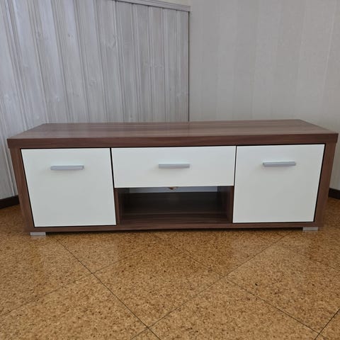 Kaunis tammen värinen pieni tv taso, jossa hyvin säilytystilaa. Paketti vain avattu, joten tuote on uusi.
