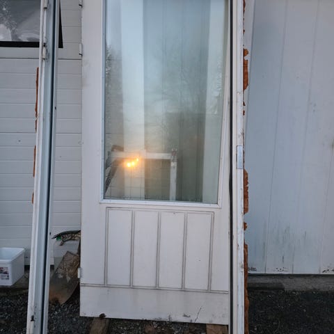Myydään kaksiosainen tammesta valmistettu n. 100v vanha ulkoovi. Sisäovet 70 lukua, vaneri pinnalla. Sisäpuolen tammiset listat ja koristeet saa mukaan halutessaan. Kevyellä hionnalla ja öljyllä "uudenveroinen", hiottu ja öljytty viimeksi 7 vuotta sitten. Mustat kohdat ovessa pintahometta. Lukko ja ulkokahva ei kuulu kauppaan. Karmien ulkomitat: Korkeus 231cm, leveys 136. Karmin syvyys 19cm.