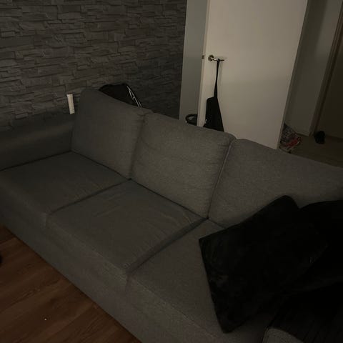 Harmaa IKEAn divaanisohva, 3-istuttava.