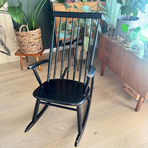 Musta puinen keinutuoli