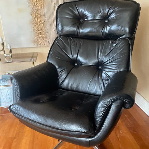 vintage retro nojatuoli lepotioli tv-tuoli sotka nahka tekonahka 1970 70-luku