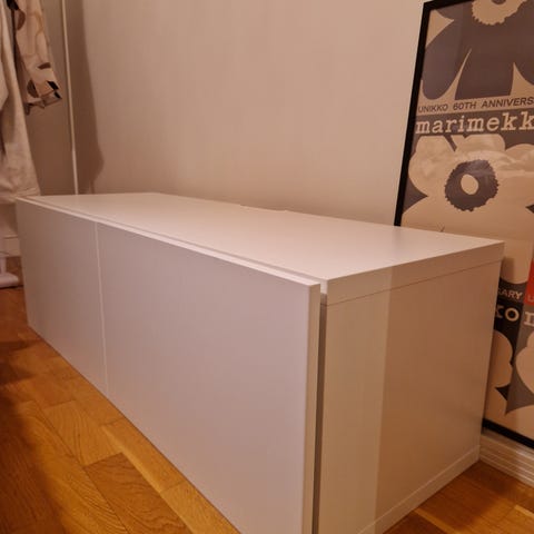 Myydään muuton alta IKEA:n bestå hylly / tv taso. On käytön jälkiä.