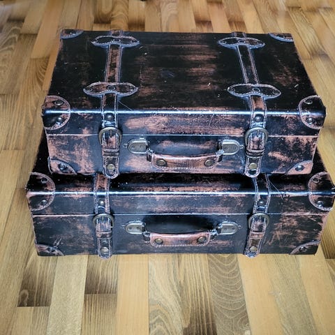 Vanhoja matkalaukkuja, monta erilaista. Retroa. Esimerkiksi sisustukseen, teatterin rekvisiitaksi, lemmikin pediksi jne jne. Hinnat 10 euroa - 30 euroa kappale.