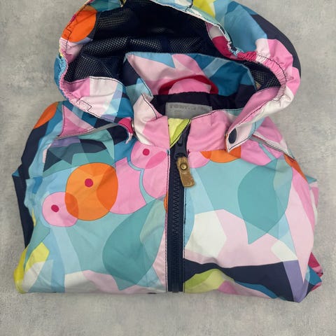 Erittäin hyväkuntoinen Reimatecin välikausihaalari. Sisällä verkkovuori. Aran värin vuoksi paikoin pientä tummentumaa mm. hihoissa, yleisilmeeltään puku on erittäin siisti, lähes uudenveroinen. Polvissa aavistus pehmentymää, mutta ovat hyvin siistit. Silikoniset jalkalenkit. Hajusteeton.