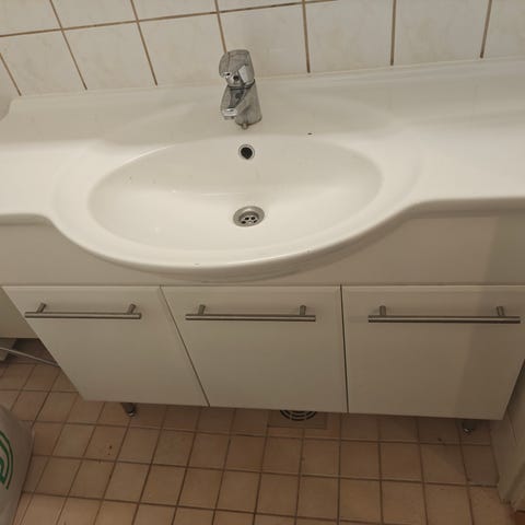 Muuten hyväkuntoinen, mutta oikeassa kyljessä hiukan levy paisunut kun bide vuoti pitempään. Mikään huomiotaherättävä se ei ole (sitä oli vaikea kuvatakin), ja vielä vähemmän jos seinä lähellä.