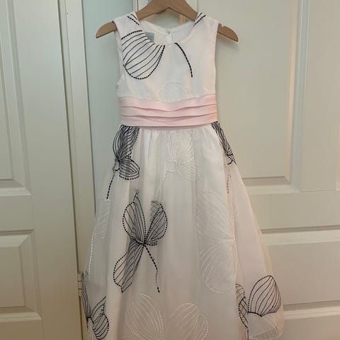 Lindex valkopitsimekko, kesämekko, juhlamekko, koko 116, alla kiinteä alushame.